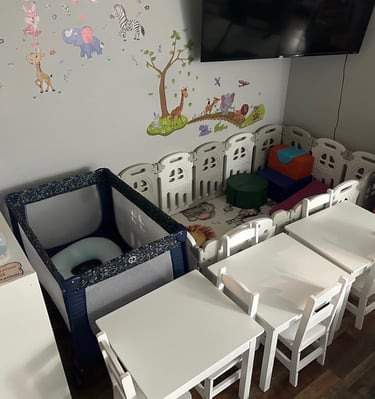 Our daycare center provides a fun and educational environment for kids aged 2-5!